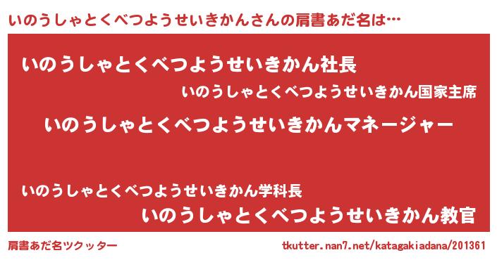 | 意味不明あだ名 | 『ペロリンいのうしゃとくべつようせいきかん』 |