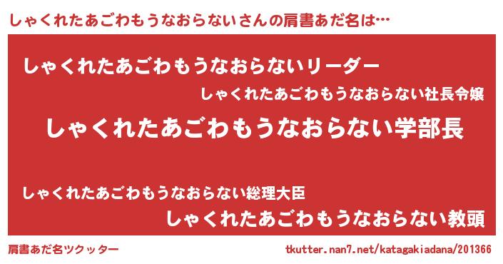 | 意味不明あだ名 | 『眠気覚ましガムしゃくれたあごわもうなおらない味』 |