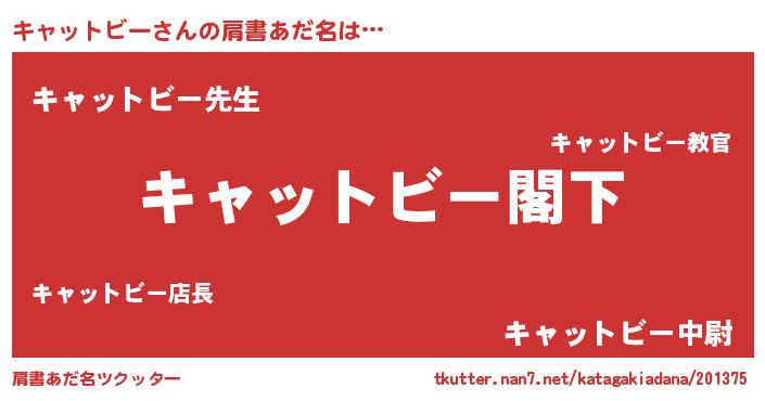 | 意味不明あだ名 | 『自称キャットビー』 |