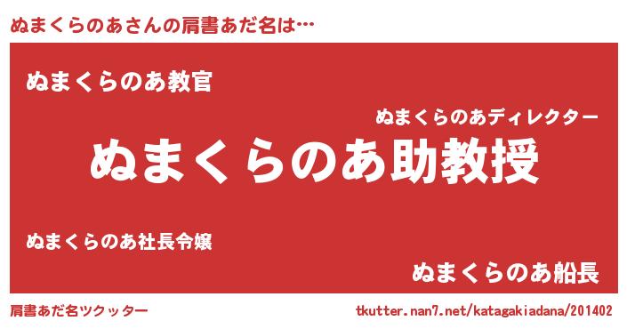| ポケモン風あだ名 | 『ヌックウザ』『ヌーマイ』 |