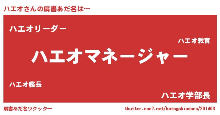 | 男性向けラノベタイトル風あだ名 | 『はたらくハエオさま!』 |