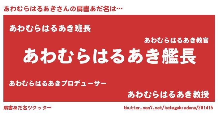 | 意味不明あだ名 | 『とにかく怪しいあわむらはるあき』 |