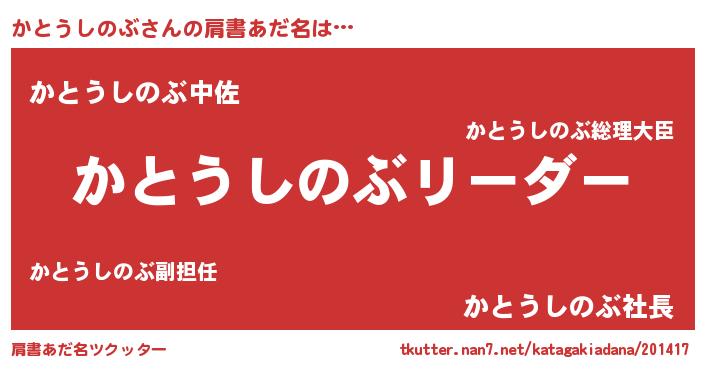 | 胡散臭い通販商品みたいなあだ名 | 『信頼と実績のペンダント…その名も「かとうしのぶ」』 |