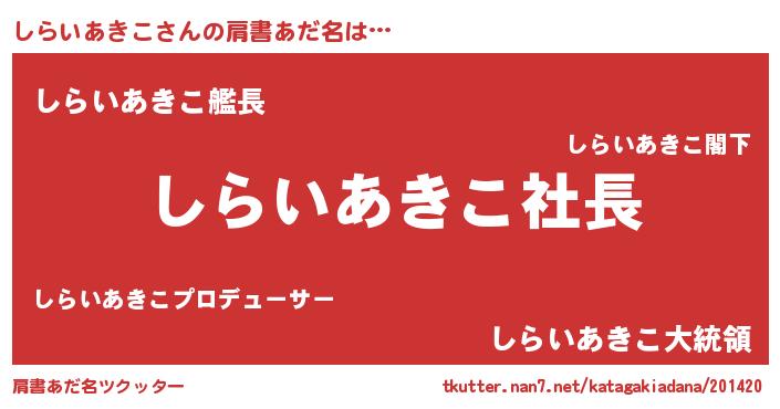 | 男性向けラノベタイトル風あだ名 | 『しらいあきこの憂鬱』 |