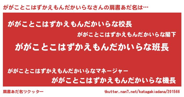 | 伝説のあだ名 | 『解き放たれた僧侶ががことこはずかえもんだかいらな』 |