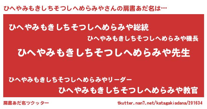 | ヘコむあだ名 | 『ひへやみもきしちそつしへめらみや(小並感)』 |