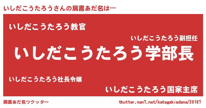 | 男性向けラノベタイトル風あだ名 | 『ノーゲーム・ノーイシダコウタロウ』 |