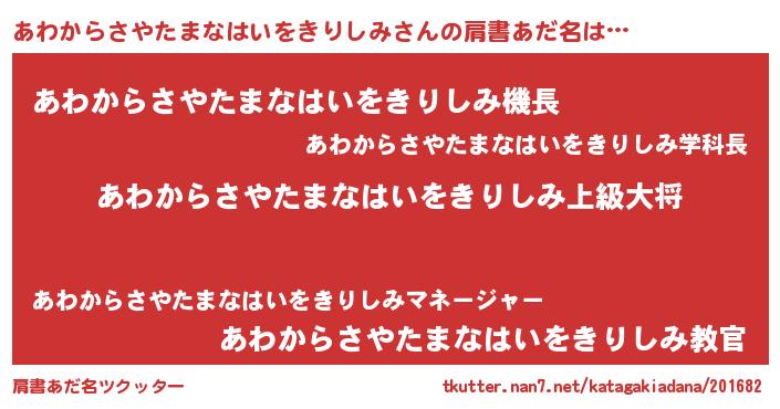| 男性向けラノベタイトル風あだ名 | 『アワカラサヤタマナハイヲキリシミスレイヤー』 |