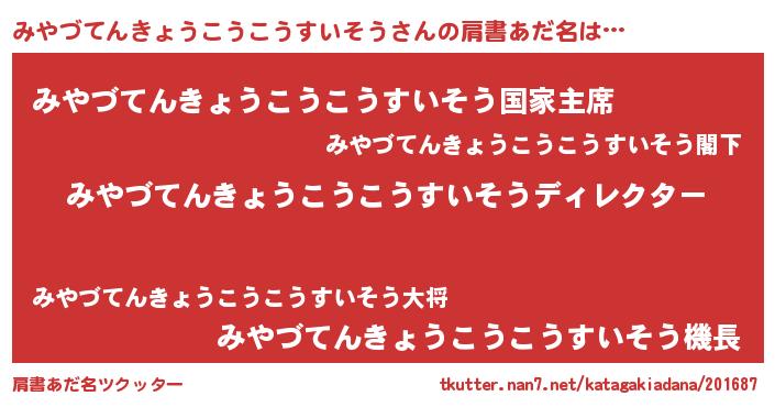 | 胡散臭い通販商品みたいなあだ名 | 『世界が平和になる高級そうな壺…その名も「みやづてんきょうこうこうすいそう」』 |