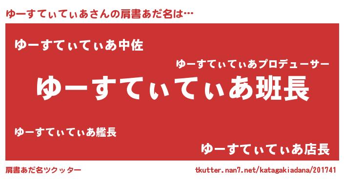 | 女子向けラノベタイトル風あだ名 | 『ゆーすてぃてぃあ様がみてる』 |