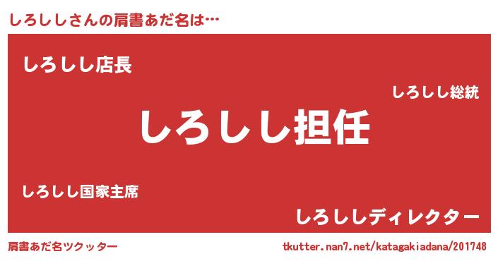 | ヘコむあだ名 | 『しろしし(苦笑)』『しろにゅー』 |
