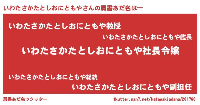 | 胡散臭い通販商品みたいなあだ名 | 『億万長者になれる水晶球…その名も「いわたさかたとしおにともや」』 |