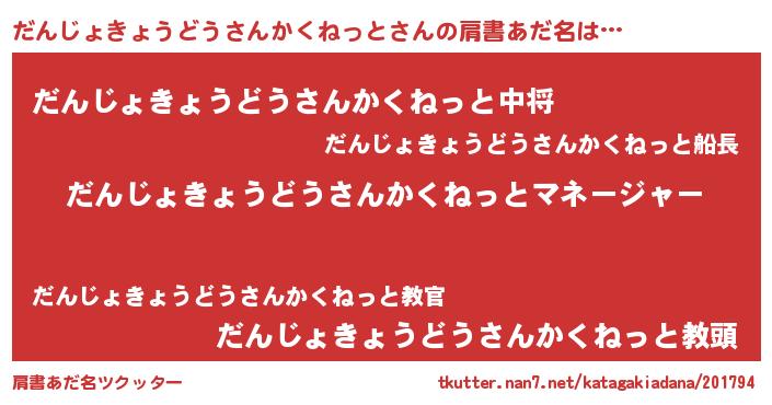 | 意味不明あだ名 | 『ニラ科だんじょきょうどうさんかくねっと属』 |