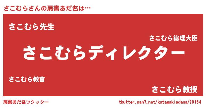 | 男性向けラノベタイトル風あだ名 | 『さこむらに滅ぼされるだけの簡単なお仕事です』 |