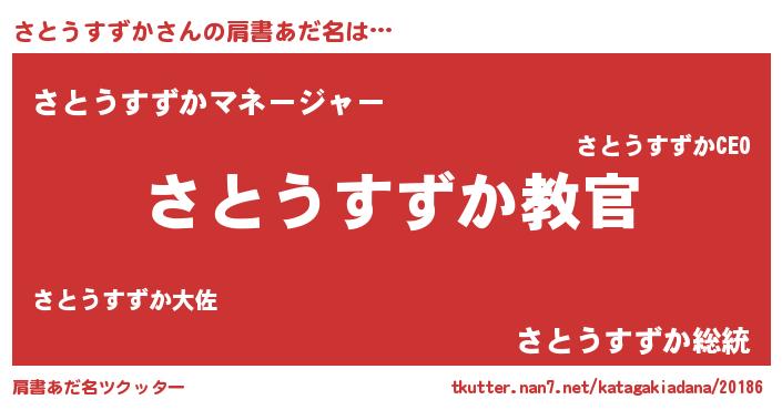 | ヒーロー風カッコイイあだ名 | 『仮面サトダー』『最強戦士サトウスズカ』 |