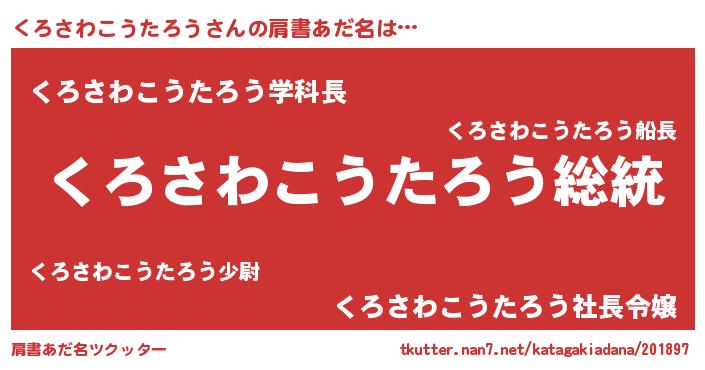 | 意味不明あだ名 | 『自称くろさわこうたろう』 |