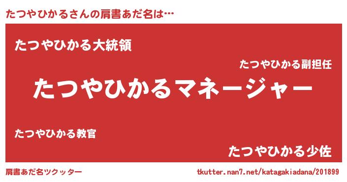 | 男性向けラノベタイトル風あだ名 | 『たつやひかるに滅ぼされるだけの簡単なお仕事です』 |
