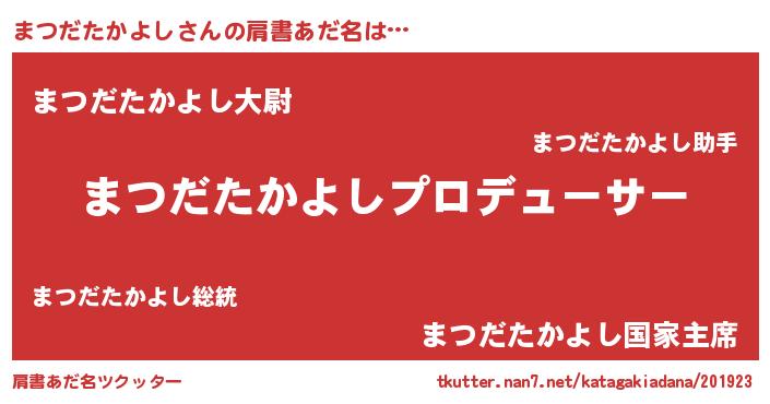 | 男性向けラノベタイトル風あだ名 | 『まつだたかよしに滅ぼされるだけの簡単なお仕事です』 |