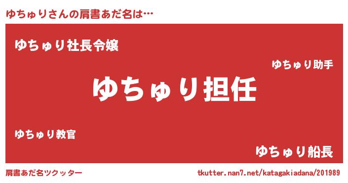 | 意味不明あだ名 | 『永久保存ゆちゅり』『ペロリンゆちゅり』 |