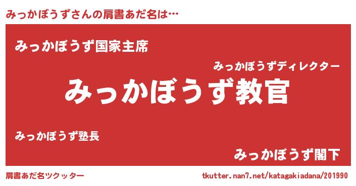 | 男性向けラノベタイトル風あだ名 | 『この素晴らしい世界にみっかぼうずを!』 |