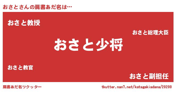 | 男性向けラノベタイトル風あだ名 | 『オサトスレイヤー』『魔弾の王とおさと』 |