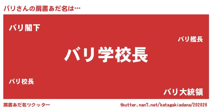 | 男性向けラノベタイトル風あだ名 | 『ノーゲーム・ノーバリ』『緋弾のバリ』 |
