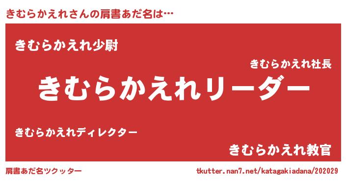 | 意味不明あだ名 | 『とにかく怪しいきむらかえれ』 |