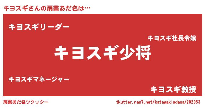 | 欧米人風あだ名 | 『トリンドルキヨスギ』 |