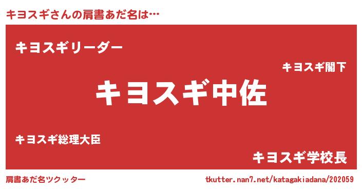| 意味不明あだ名 | 『ニラ科キヨスギ属』『自称キヨスギ』 |