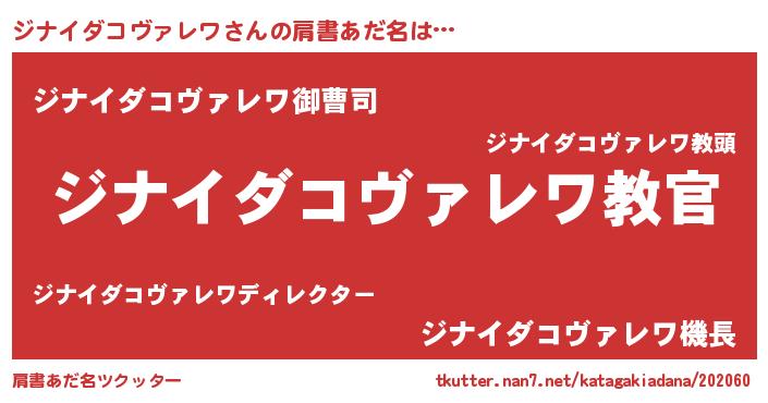| 欧米人風あだ名 | 『ダレノガレジナイダコヴァレワ』 |