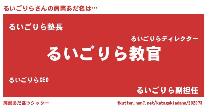 | 意味不明あだ名 | 『住所不定無職るいごりら(93歳)』 |