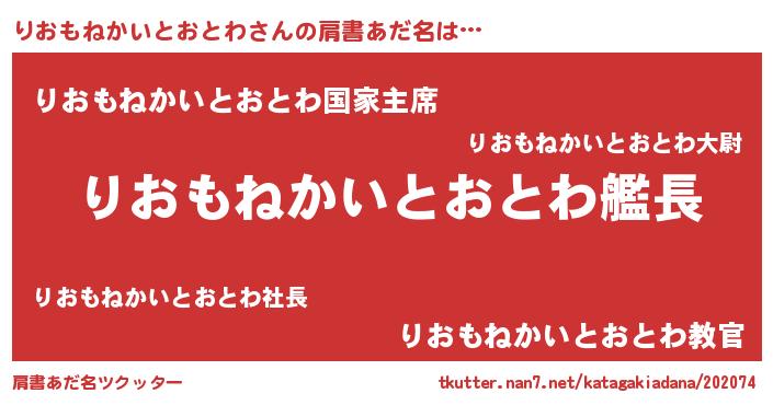 | 男性向けラノベタイトル風あだ名 | 『緋弾のリオモネカイトオトワ』 |
