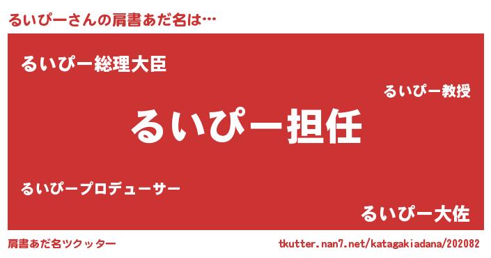 | 女子向けラノベタイトル風あだ名 | 『るいぴーの契約王妃』『るいぴー恋絵巻』 |