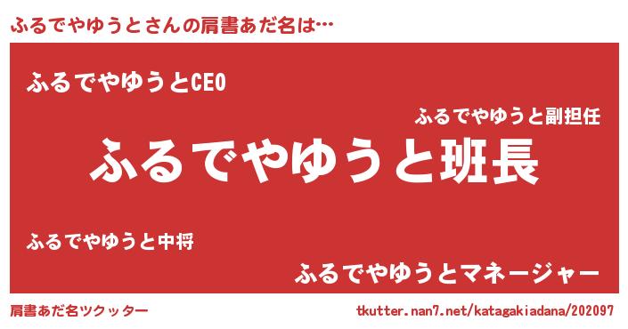 | 意味不明あだ名 | 『とにかく怪しいふるでやゆうと』 |