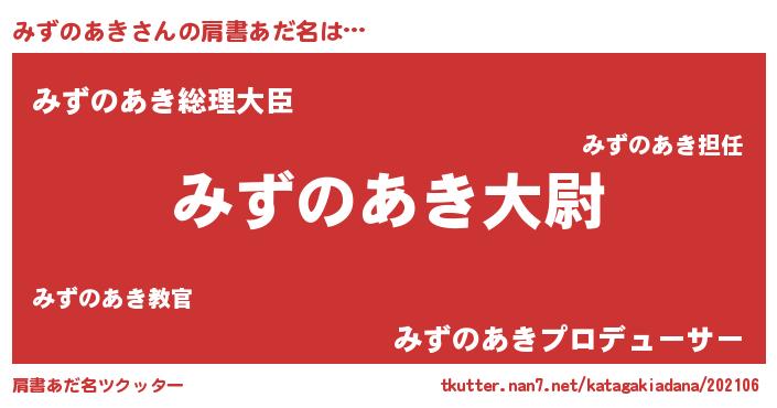 | 男性向けラノベタイトル風あだ名 | 『転生したらみずのあきだった件』 |