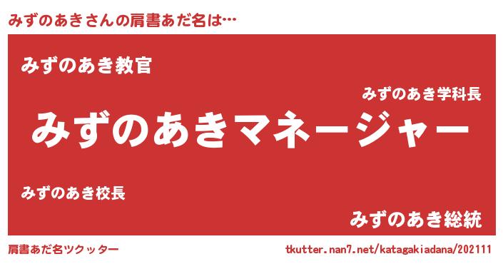 | 男性向けラノベタイトル風あだ名 | 『はたらくみずのあきさま!』 |