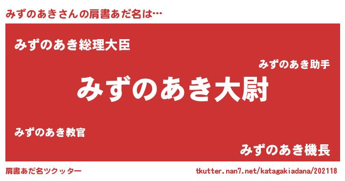 | 男性向けラノベタイトル風あだ名 | 『転生したらみずのあきだった件』 |