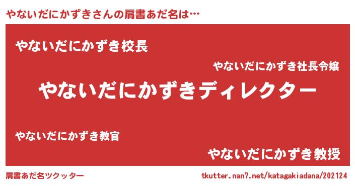 | 男性向けラノベタイトル風あだ名 | 『はたらくやないだにかずきさま!』 |