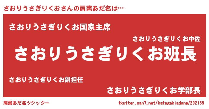 | 意味不明あだ名 | 『とにかく怪しいさおりうさぎりくお』 |