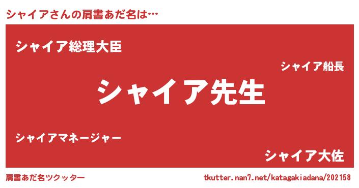 | ファンタジー風あだ名 | 『シャディッシュ』『ユリシャヴァット』 |