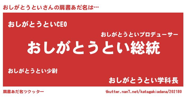 | ヒーロー風カッコイイあだ名 | 『最強戦士オシガトウトイ』 |