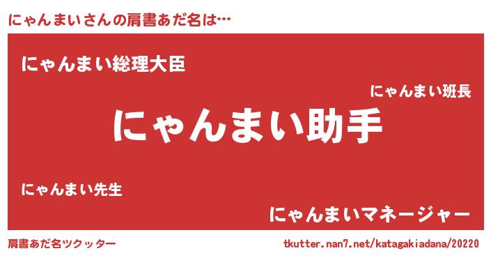 | 女子向けラノベタイトル風あだ名 | 『にゃんまい恋絵巻』 |