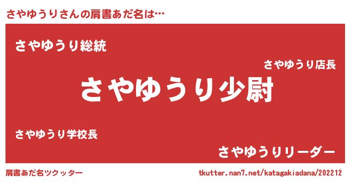 | ポケモン風あだ名 | 『サヤキング』『サヤセウス』 |