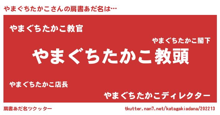 | 意味不明あだ名 | 『永久保存やまぐちたかこ』 |