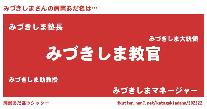 | 意味不明あだ名 | 『住所不定無職みづきしま(98歳)』 |
