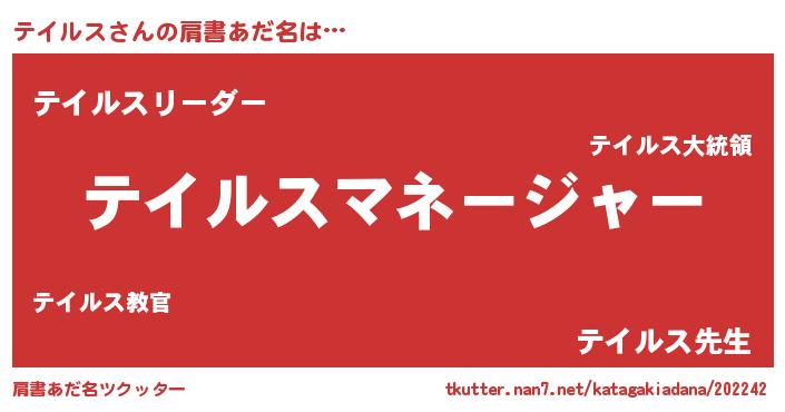 | 意味不明あだ名 | 『とにかく怪しいテイルス』 |