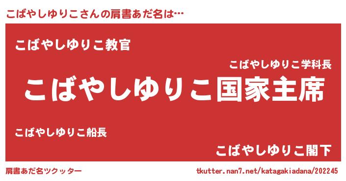 | 欧米人風あだ名 | 『こばやしゆりこクリステル』 |