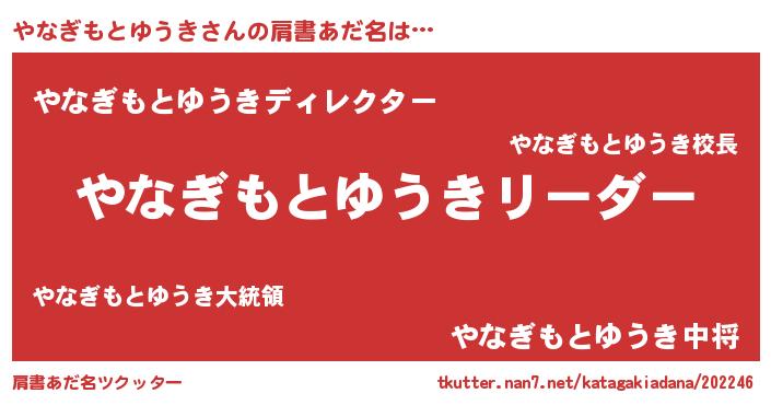 | ヘコむあだ名 | 『やなぷりん』『やなぎもとゆうき(笑)』 |
