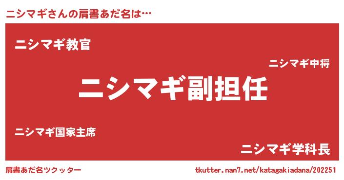 | ファンタジー風あだ名 | 『ニシディッシュ』『ヴァルニシーナ』 |