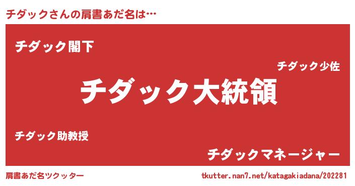 | 女子向けラノベタイトル風あだ名 | 『チダックの婚約者』『闇のチダック』 |